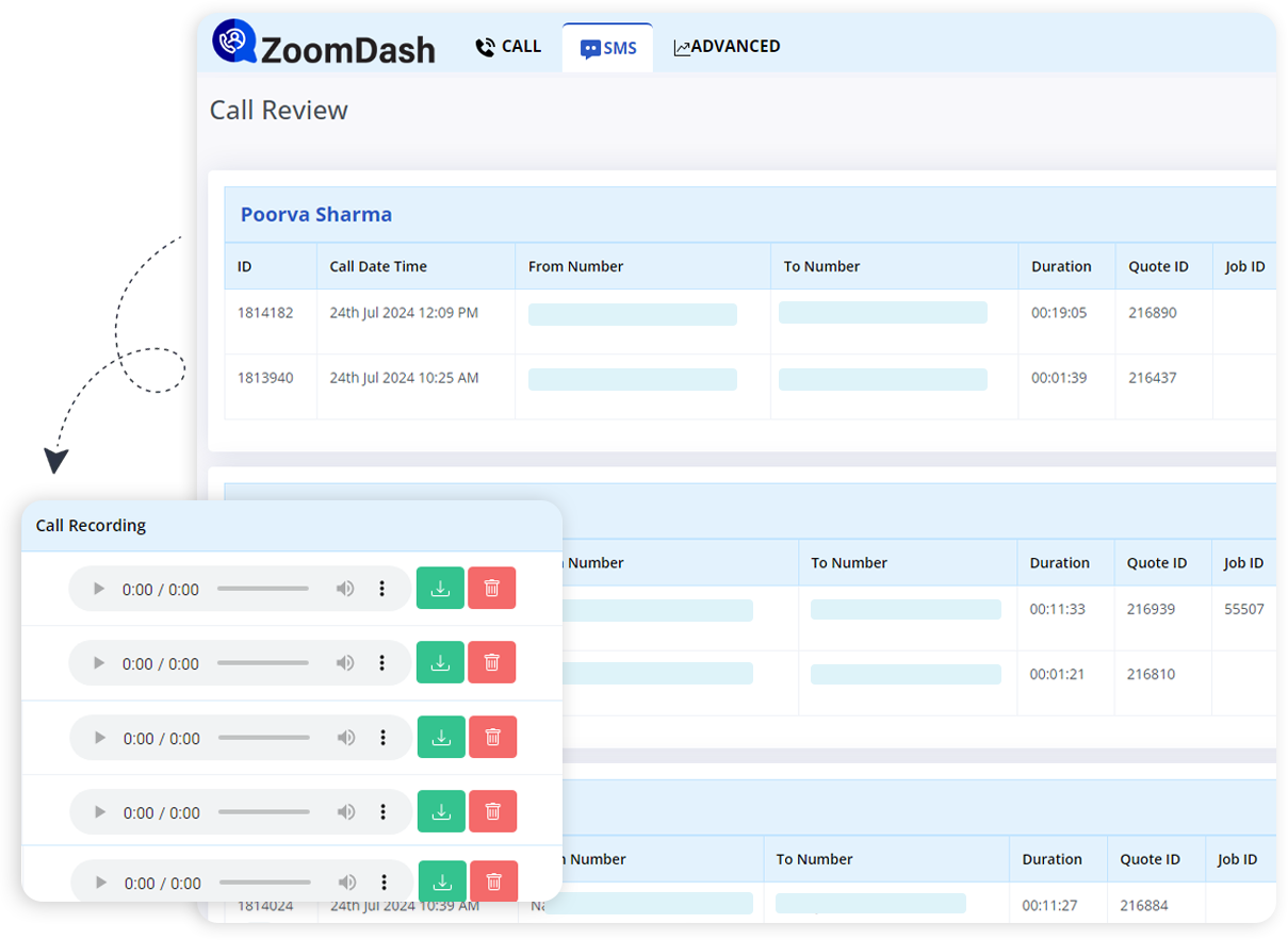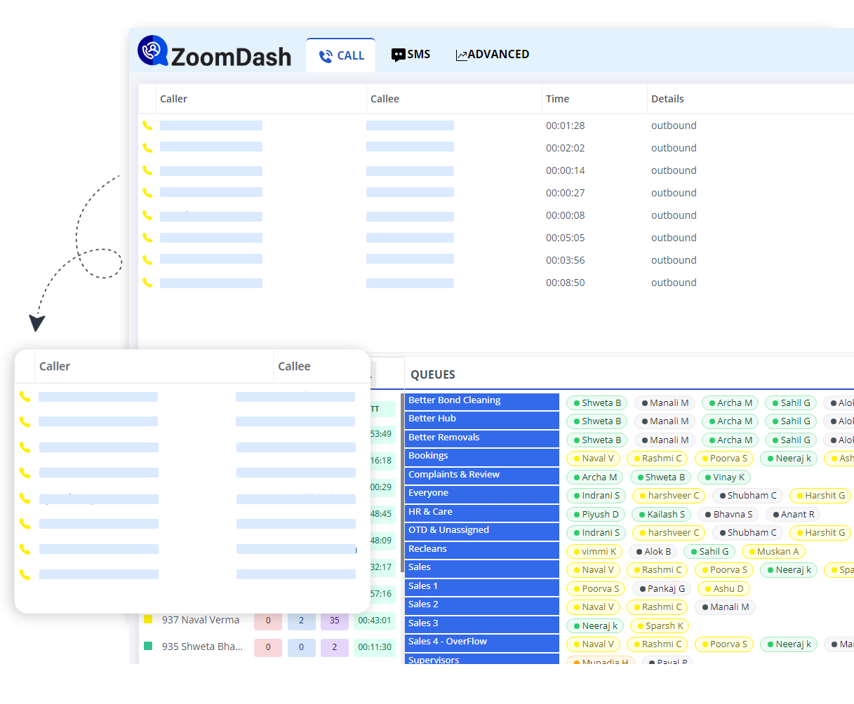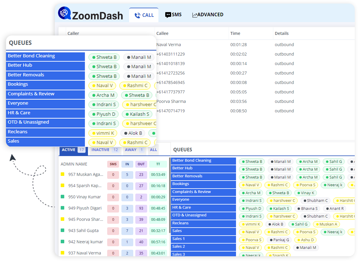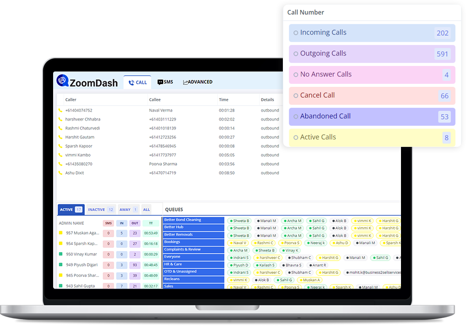 ZoomDash helps keep managers in the loop by providing access to real-time active calls with details of the callers and clients on the dashboard.
